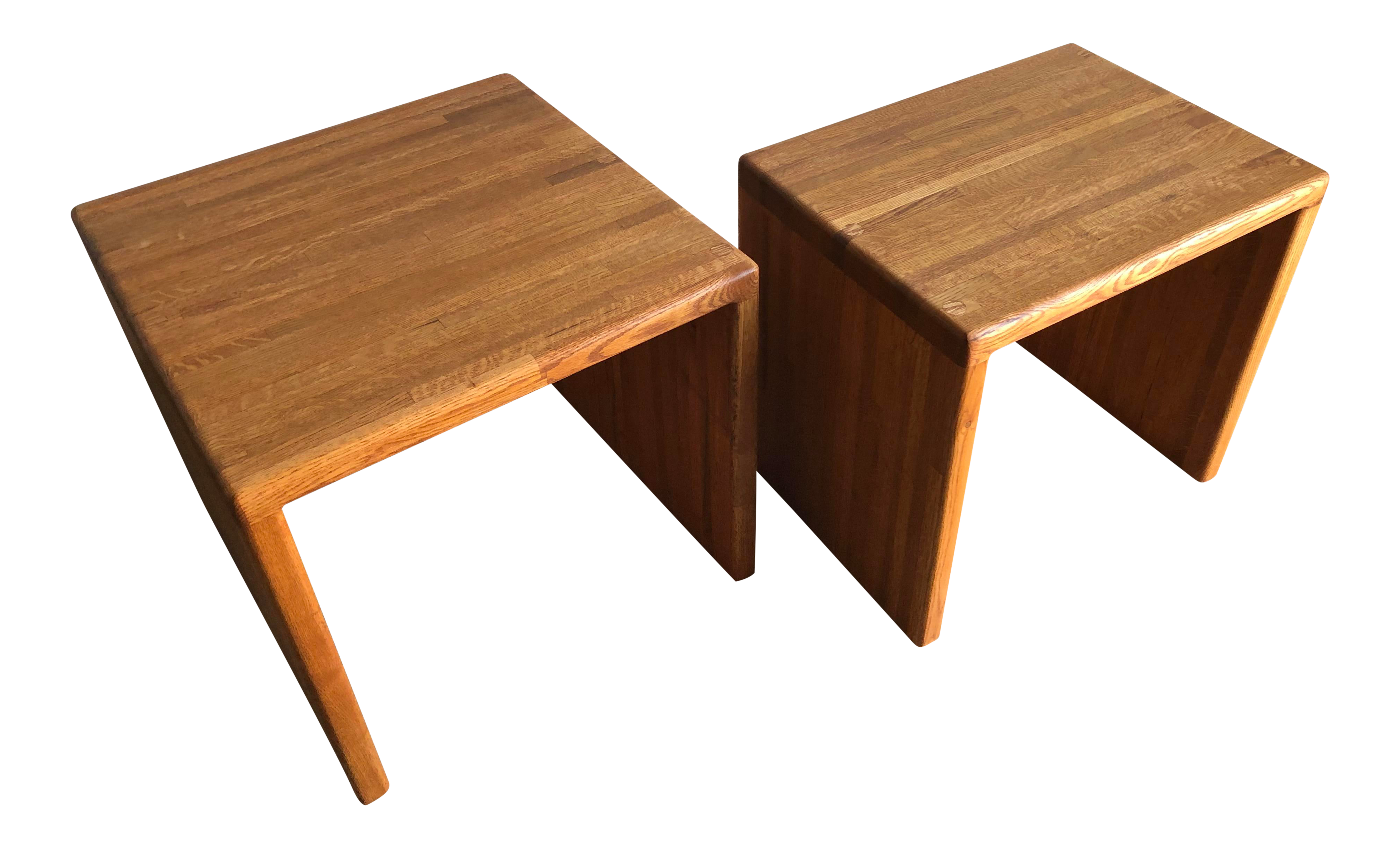 Vintage Mid Century Modern Butcher Block C Shaped Side Tables A