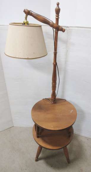 Albrecht Auctions Antique End Table Lamp Combo Round Table With